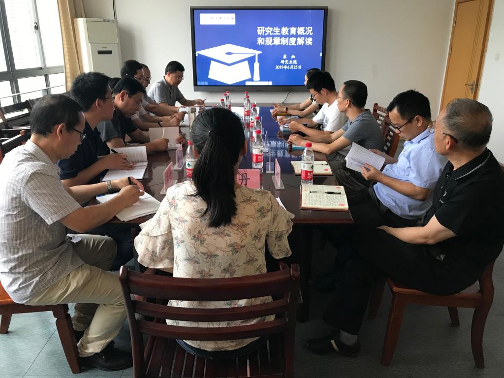 培训会上,崔灿院长对浙江理工大学的研究生教育概况和规章制度等作了详细解读,并与参加培训的研究生导师在学生培养、科学研究及社会合作等方面进行了广泛交流。通过培训让各位导师尽快熟悉浙江理工大学研究生教育的宗旨与目的、了解研究生培养的特点与规律、明确导师自身职责与任务,强化了导师们的人才培养意识、岗位职责意识和立德树人目标,帮助导师更好的培养研究生。