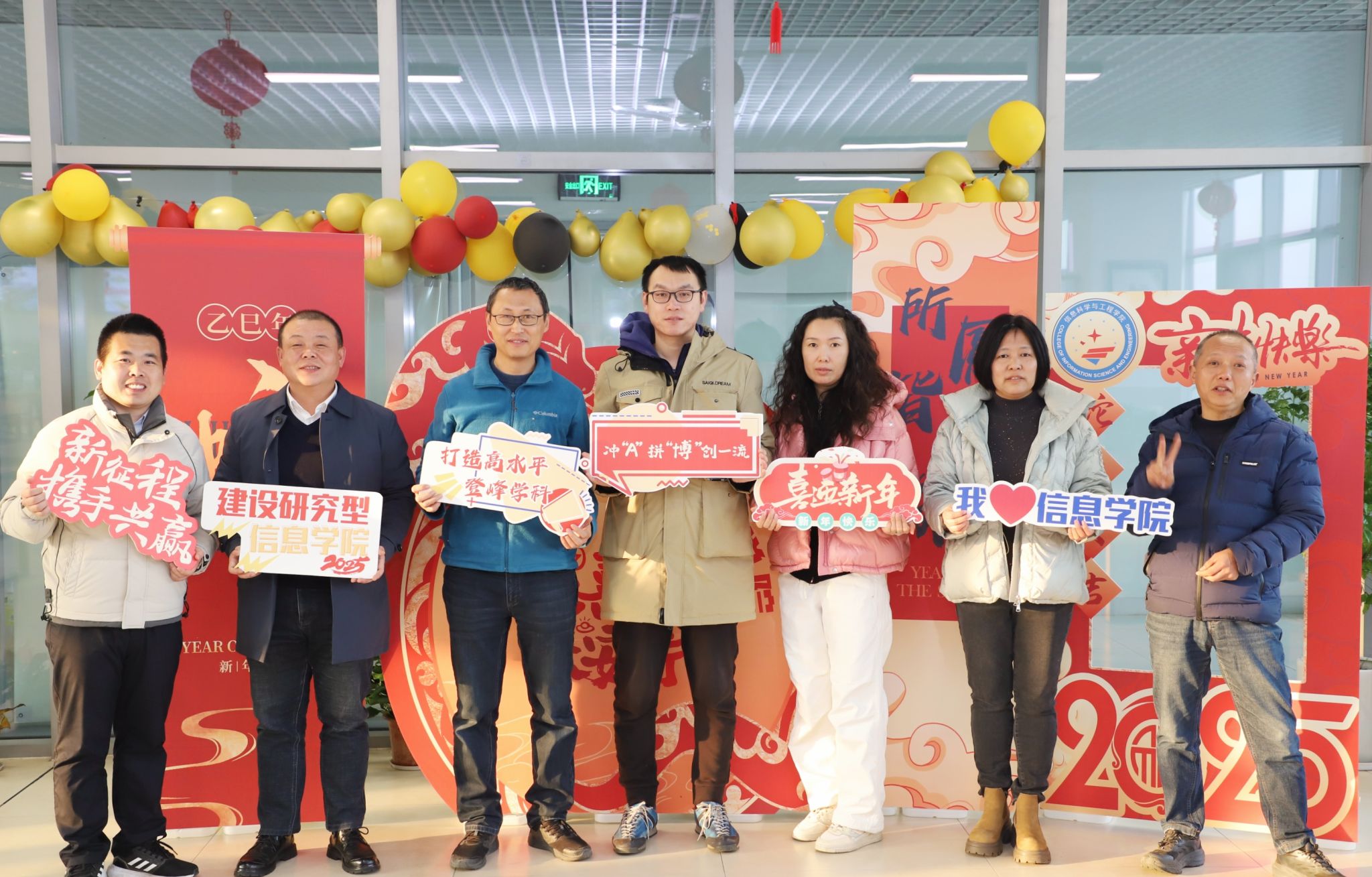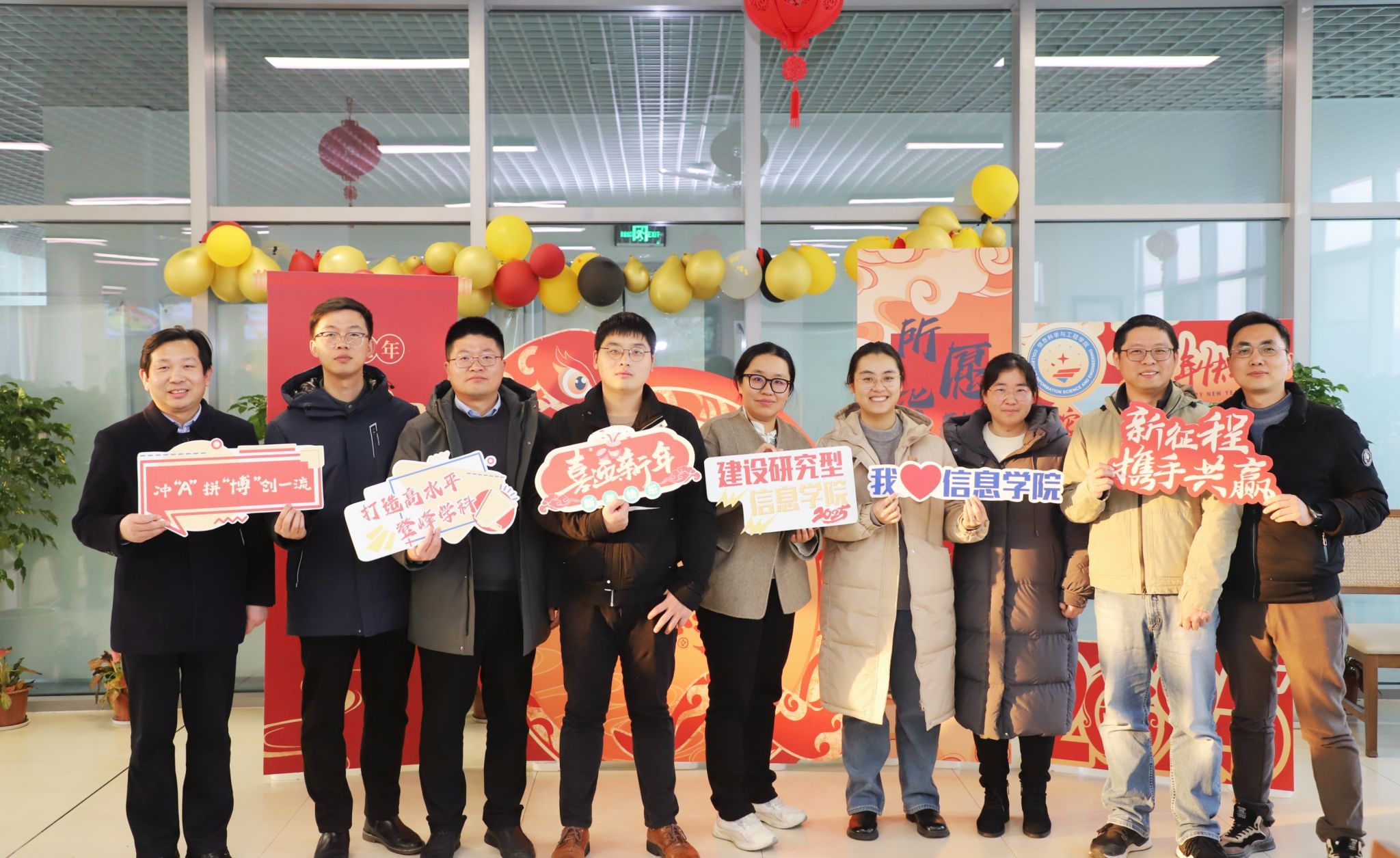 在桂园食堂三楼举办了一场喜气洋洋的“岁末再回声,信院新启航”迎新年活动。