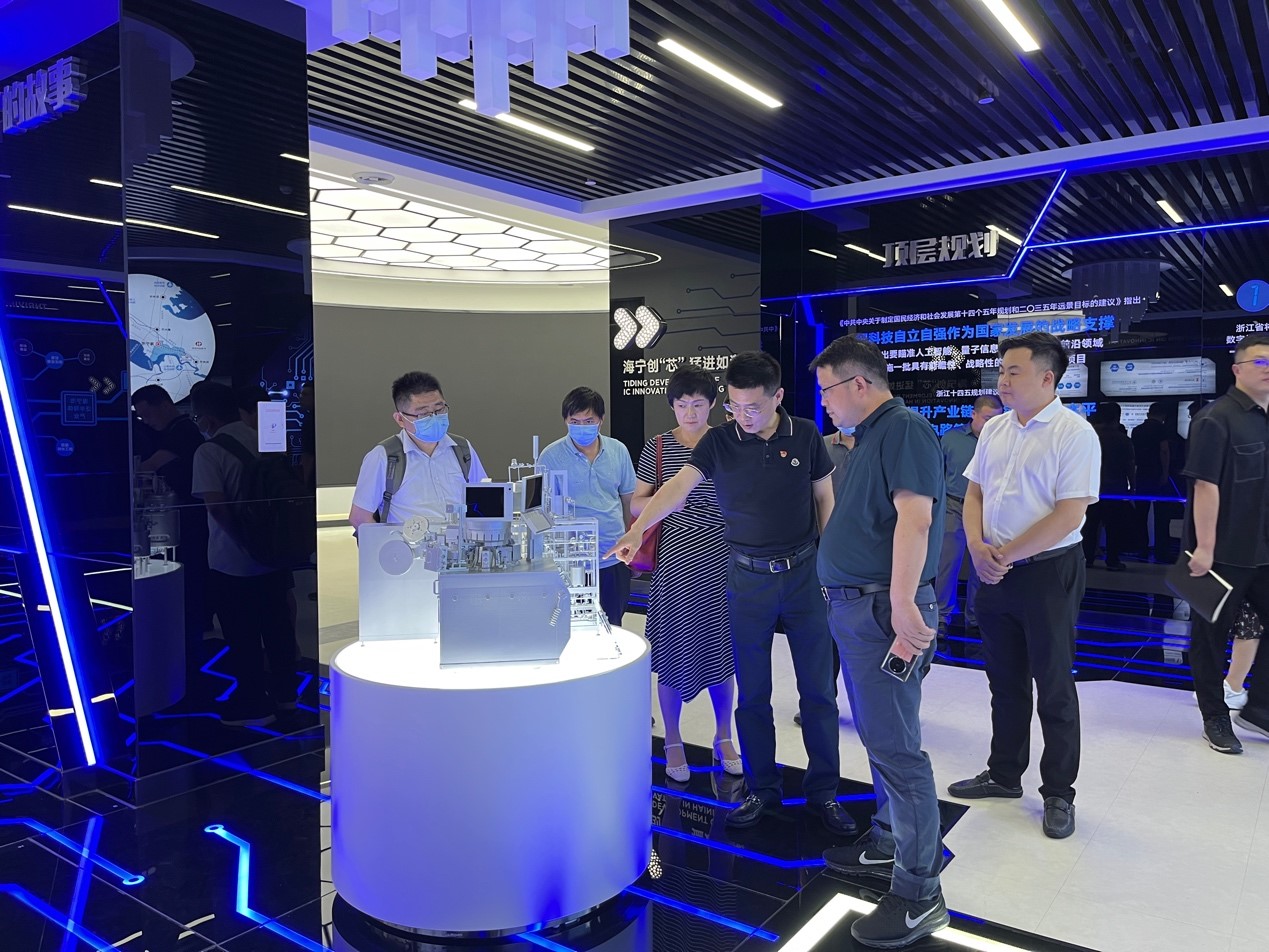 最后,与会人员在海宁经开区(海昌街道)企业服务中心主任费腾锋的陪同下,参观了天通智能装备产业基地、天通瑞宏科技有限公司的生产制造车间及产品展厅,并围绕半导体装备、滤波器元件的制作流程等内容进行交流。
