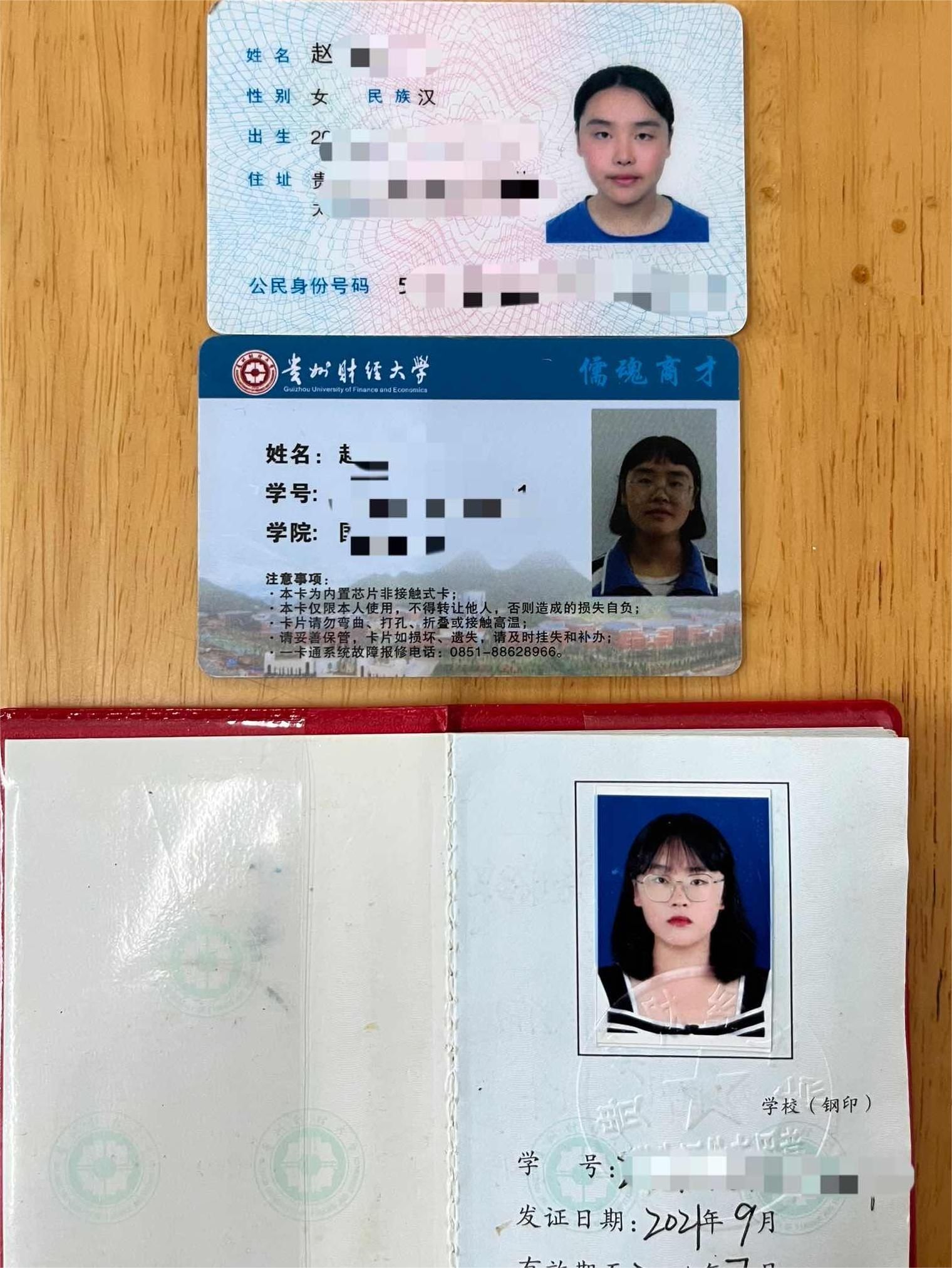 值班同学小邓在打开学生证后,发现里面夹带着失主的身份证和校园卡,显然是其主人不慎将其遗失于此。邓同学的第一反应是“大学期间的重要证件都不见了,失主一定很着急,并且开学就要注册学生证了,我得想办法联系失主。”针对这一特殊情况,学生社区迅速响应,决定求助时时彩