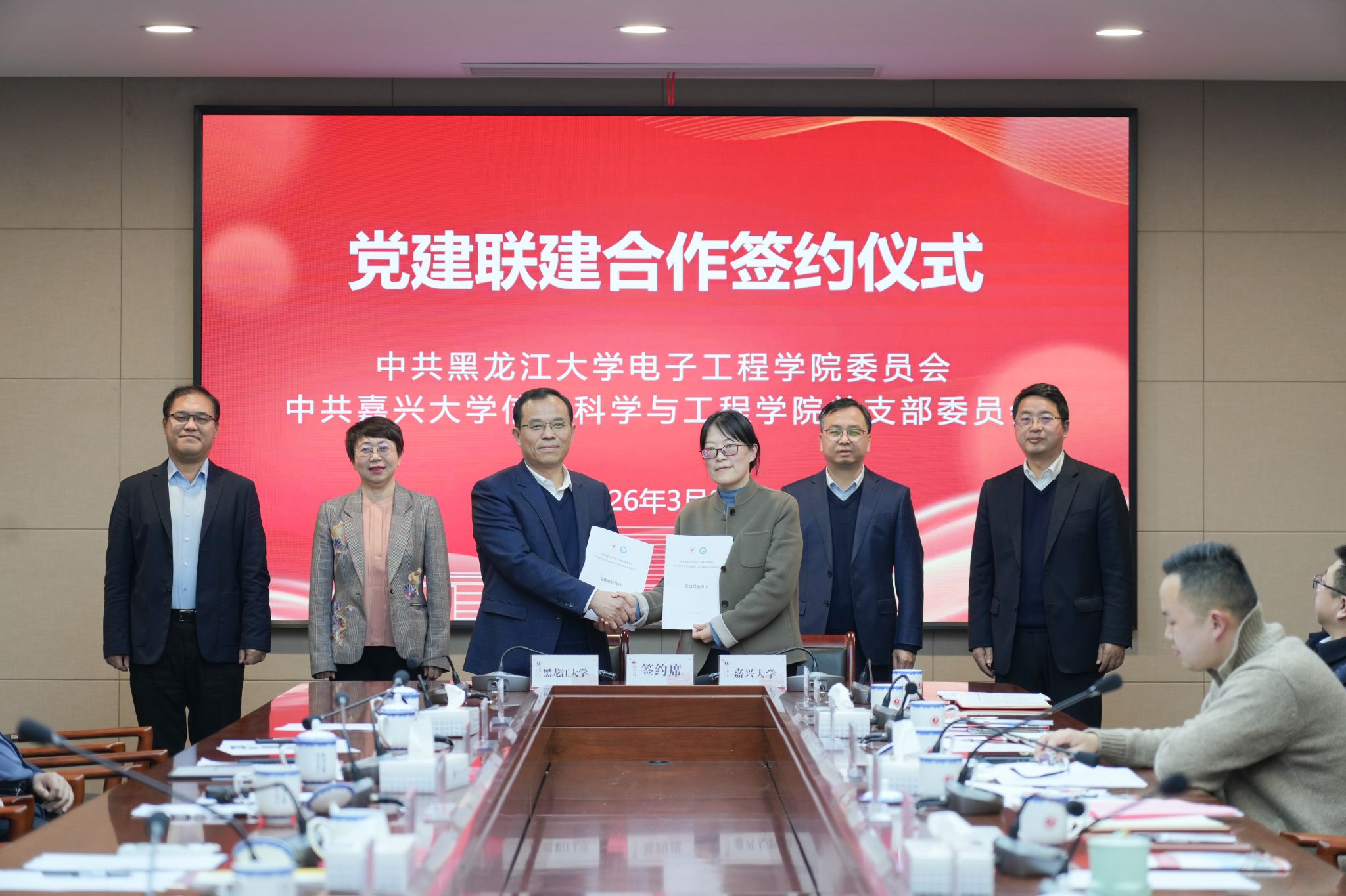 为进一步深化校际合作,推动党建与事业发展深度融合,3月24日下午,我院与黑龙江大学电子工程学院合作签约仪式在嘉兴大学行政楼346会议室举行。双...